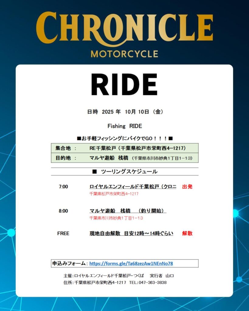 本イベントは、ロイヤルエンフィールド千葉松戸、ロイヤルエンフィールドつくばの合同企画です。